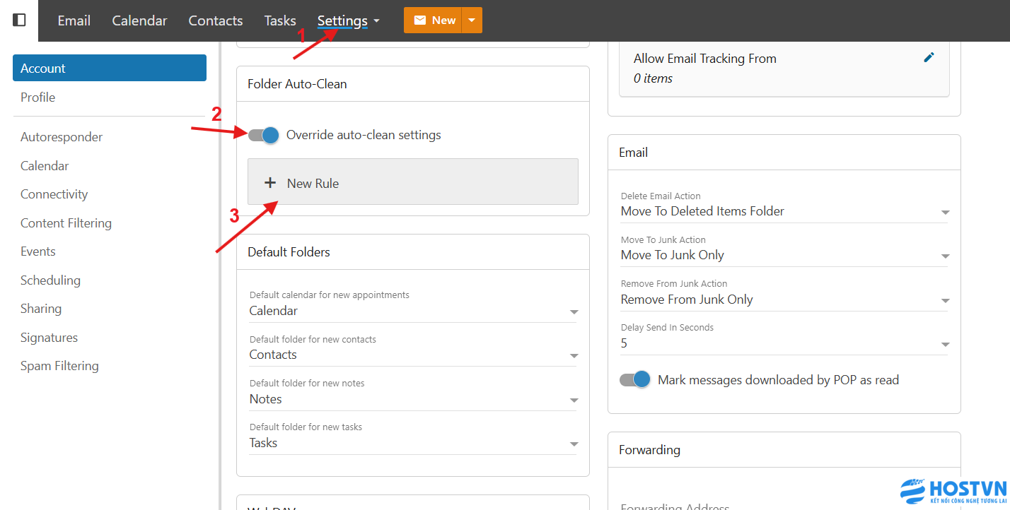 Khi bạn không có thời gian dọn dẹp các mail trong Email Business, bạn có thể kích hoạt chức năng tự động dọn dẹp mail như sau: