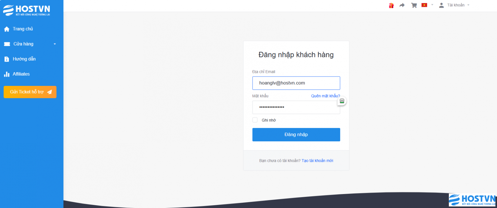 Với một số khách hàng cần nhu cầu bảo mật cho Email Business, cho nên HOSTVN đã có tính năng cài SSL Let's Encrypt và tự động gia hạn. Bài viết này mình sẽ hướng dẫn các bạn cài đặt SSL sử dụng dịch vụ Email Business tại HOSTVN. Hướng dẫn bật SSL cho Email Business.Bước 1: Đăng nhập vào tài khoản khách hàng.