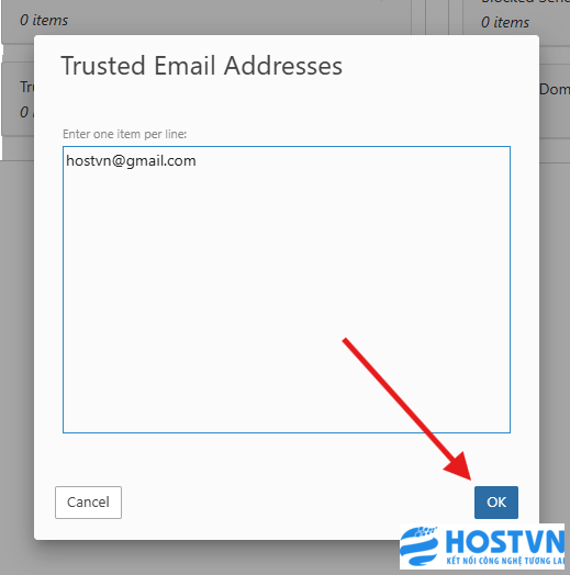 Bước 2: Thêm Trust cho tên miền hoặc email người gửi tới