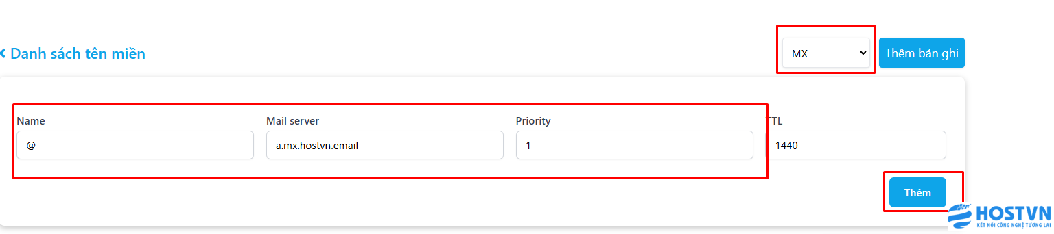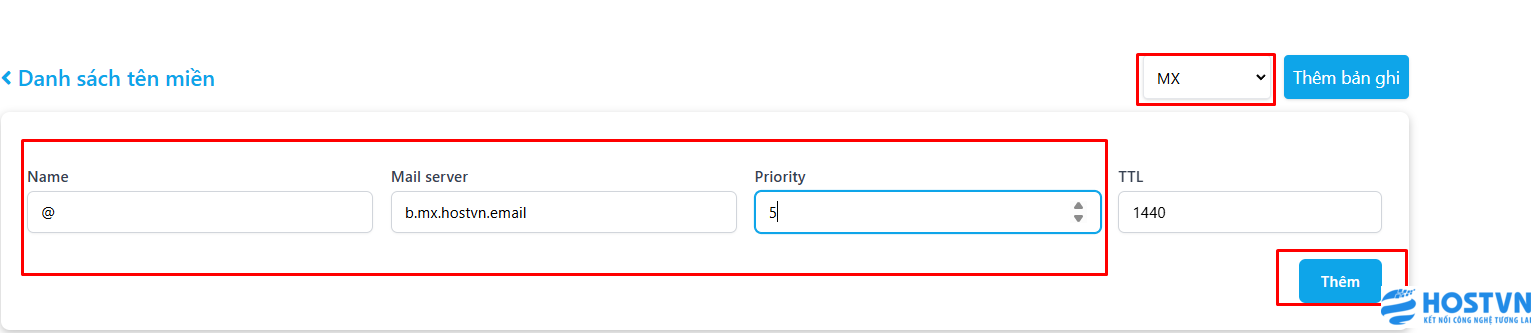 Như vậy là bạn đã cấu hình xong các bản ghi cần thiết cho tên miền của mình. tuy nhiên để tăng độ tin cậy cho tên miền của mình khi sử dụng email bạn cần tạo DKIM cho tên miền của mình. Việc này giúp cho các email của bạn tránh bị rơi vào hòm thư spam. Để có thể tạo DKIM cho tên miền, bạn có thể thao khảo bài viết sau: Xem hướng dẫn. Bạn có thể xem thêm hướng dẫn cấu hình các bản ghi trên tài khoản khách hàng theo liên kết sau: Xem hướng dẫn. Sau khi tạo đầy đủ các bản ghi, bạn cần chờ từ 30p - 24h để DNS cập nhật đầy đủ các bản ghi. Nếu bạn sử dụng tên miền ở các nhà cung cấp khác, hãy tạo các bản ghi tương tự như trên hoặc liên hệ với nhà cung cấp tên miền của bạn để được hỗ trợ thiết lập các bản ghi hoặc cấp thông tin đăng nhập vào trang quản lý tên miền cho bộ phận kỹ thuật HOSTVN qua email kythuat@hostvn.net để được hỗ trợ một cách nhanh nhất. Chúc các bạn thành công!