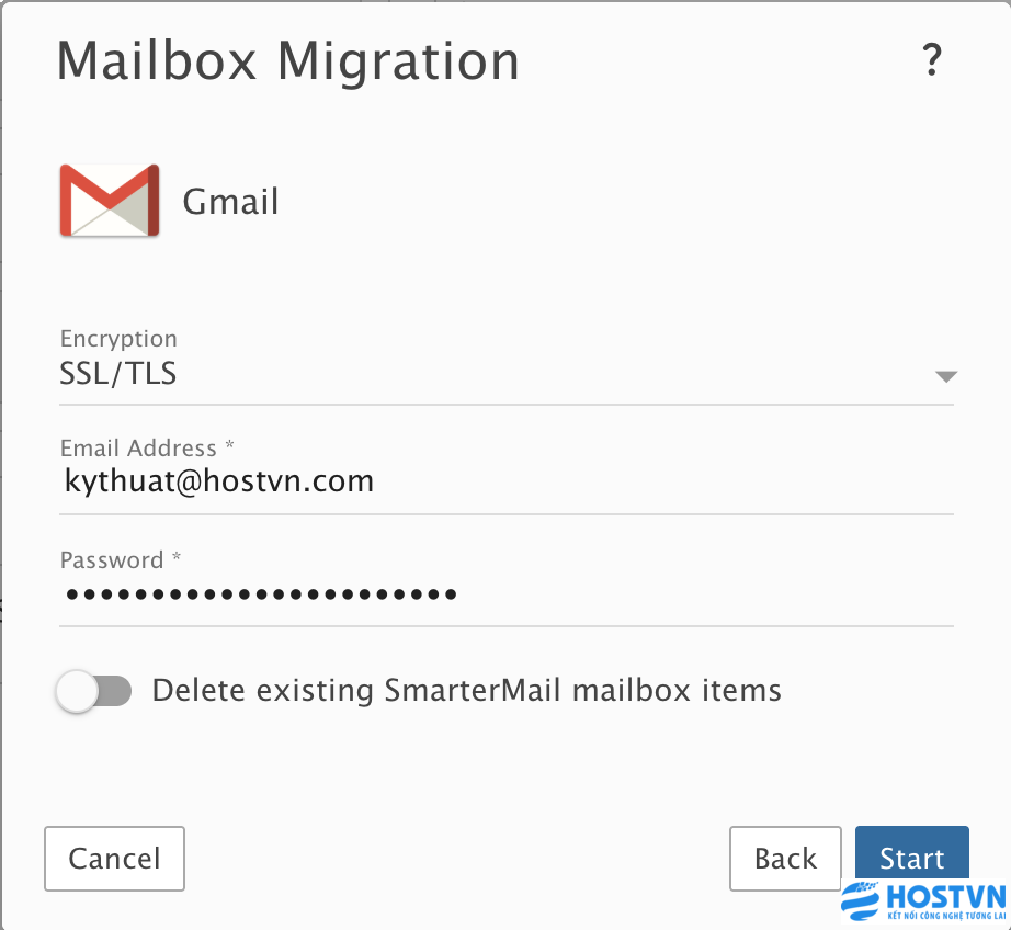 Sau khi cung cấp đầy đủ các thông tin trên, bạn nhấn nút Start để bắt đầu quá trình chuyển thư. Vui lòng giữ nguyên cửa sổ cho tới khi nhận được thông báo thành công.