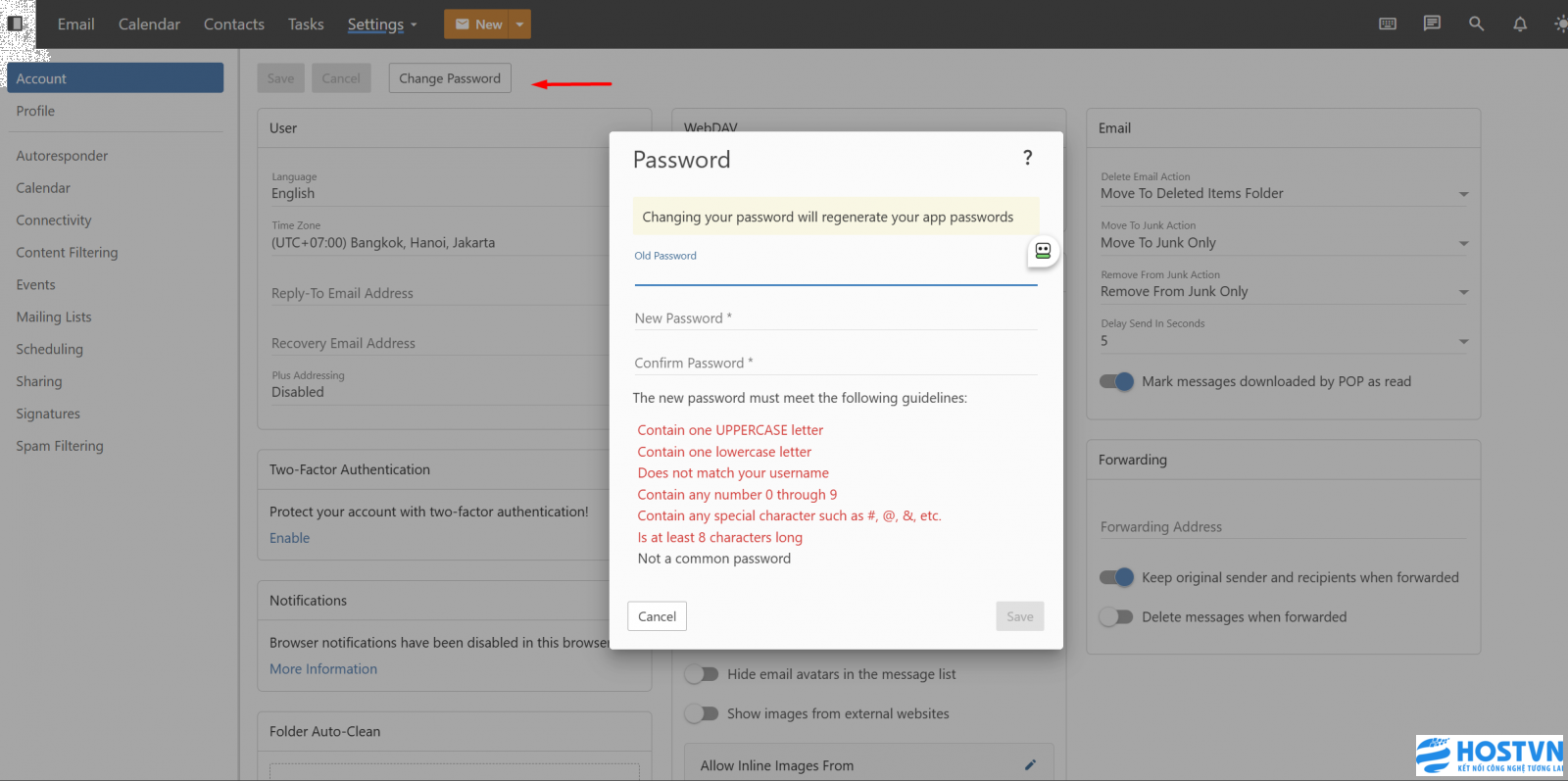 Lưu ý từ HOSTVN: Nên sử dụng mật khẩu có độ dài tối thiểu 8 ký tự, bao gồm chữ hoa, chữ thường, số và ký tự đặc biệt (ví dụ: @, #, !) để tăng cường tính bảo mật.