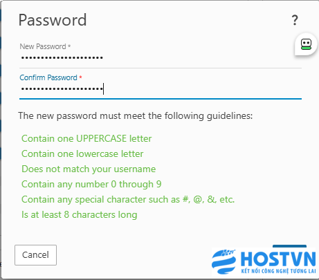 Lưu ý: Mật khẩu phải tuân thủ nguyên tắc sau: