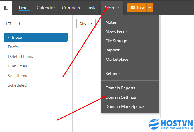 Bước 2: Chọn More sau đó chọn Domain settings.