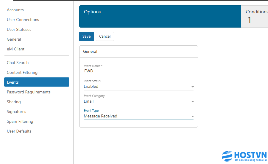 Lưu ý: Nếu bạn cần sao lưu lại toàn bộ email gửi/nhận, cần tạo 2 event, một event cho Message Received và một event cho Message Sent.