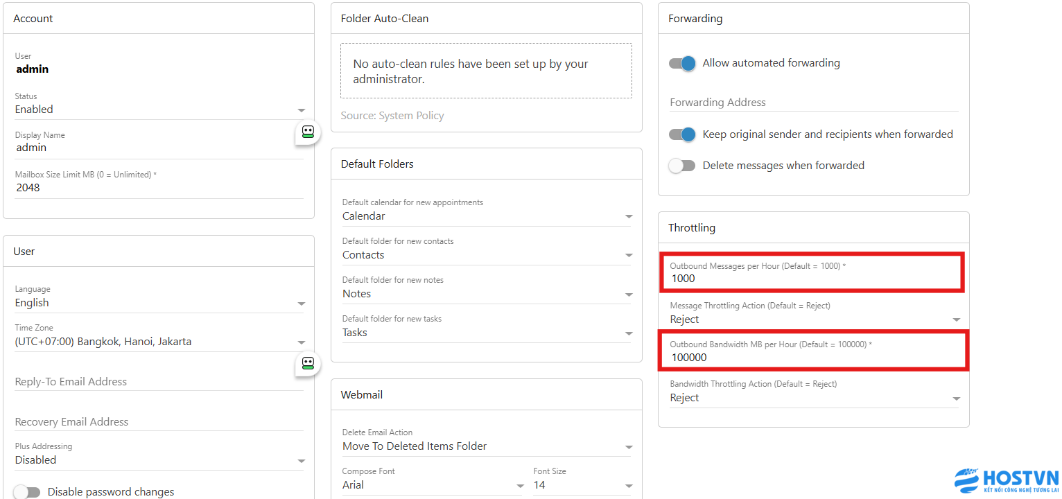 Outgoing Messages per Hour: Giới hạn số lượng email gửi đi mỗi giờ.