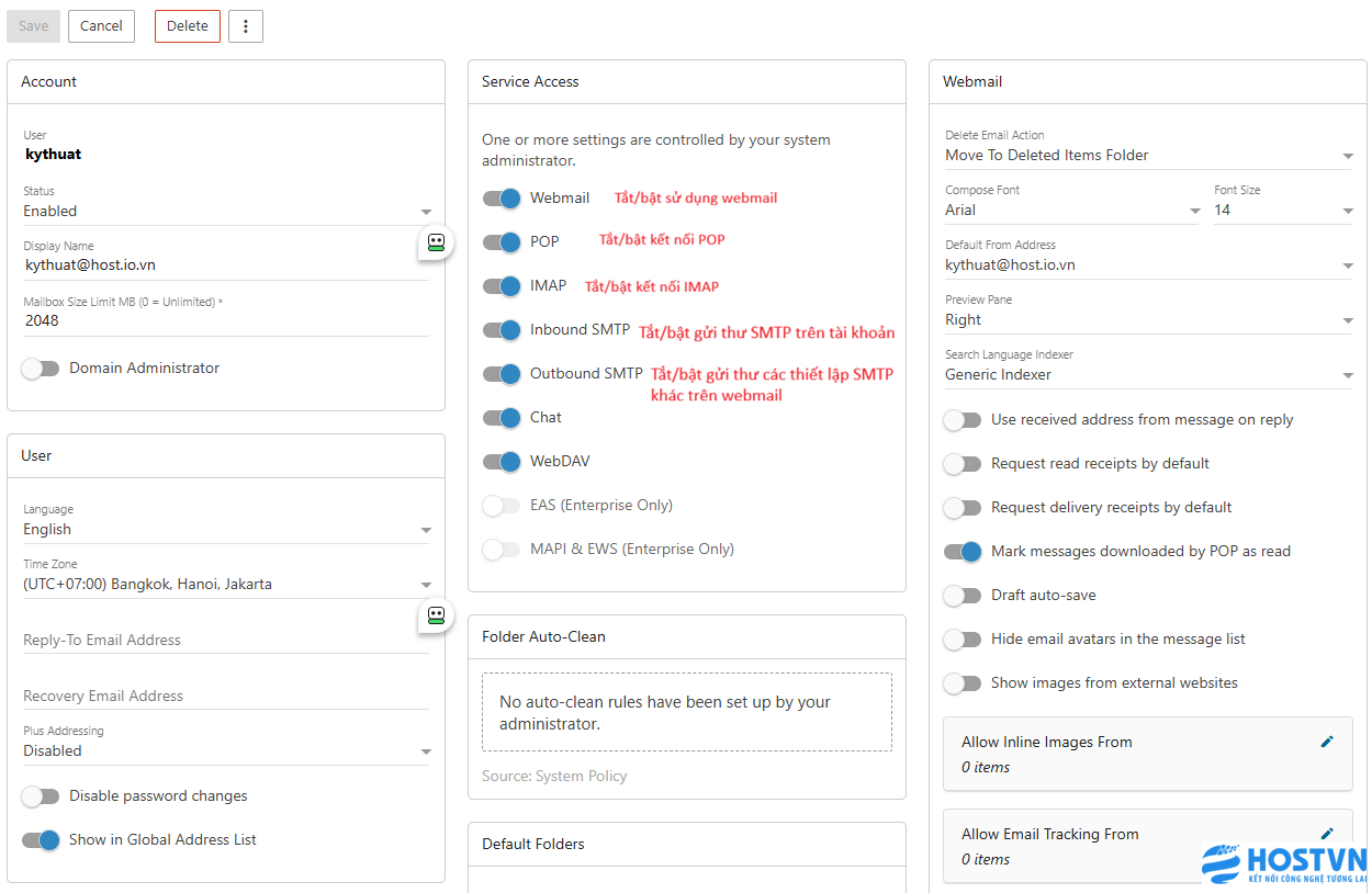Hướng dẫn khóa nhận/gửi tài khoản email business