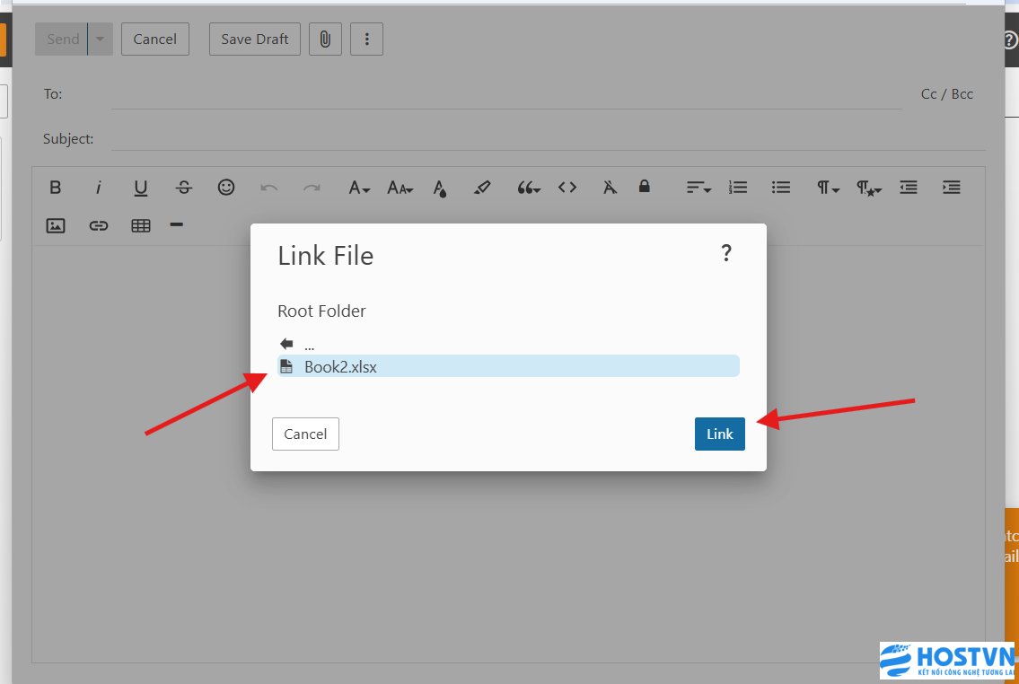 Bước 3: Bạn có thể đính kèm file vừa tạo vào mail và gửi cho người khác bằng cách chọn vào Link File.