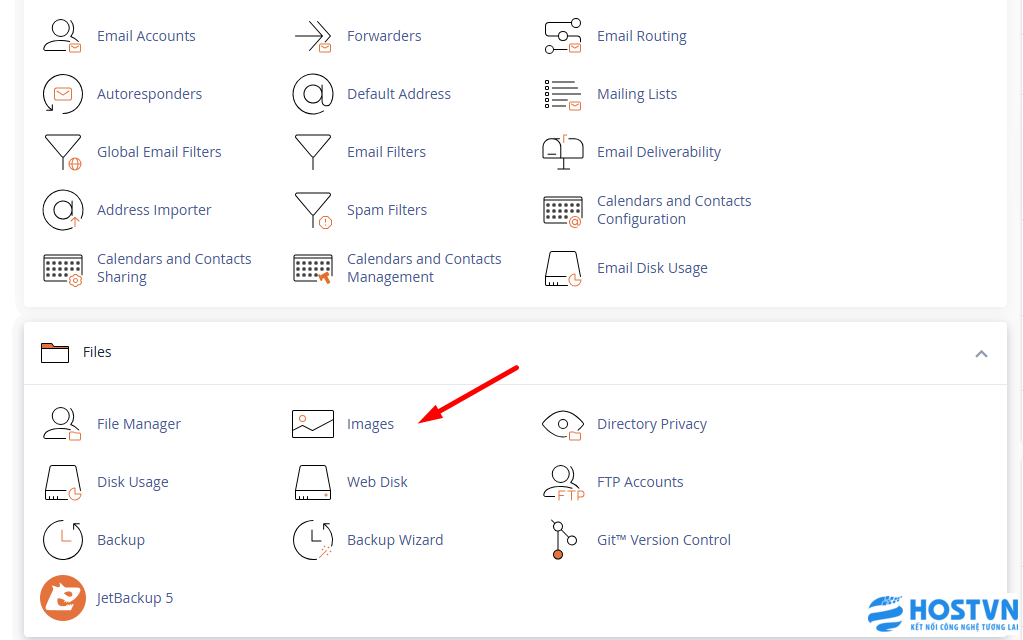Bước 1: Truy cập vào công cụ Images trên cPanel