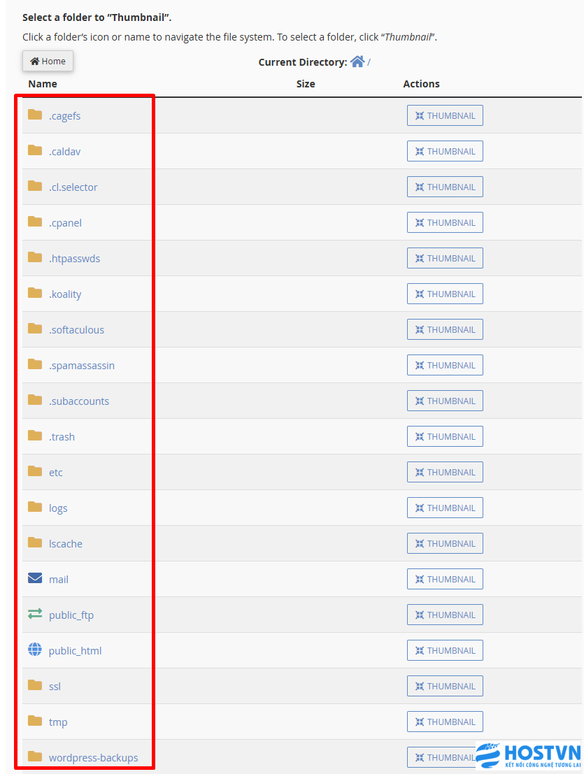 Cpanel có thể có giao diện hơi khó sử dụng với người mới bắt đầu. Hãy nhớ là bạn phải nhấn vào biểu tượng thư mục để mở thư mục và nhấn vào tên thư mục để chọn.