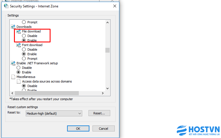 Khi sử dụng trình duyệt để tải các file cài đặt, file word, pdf.... nhưng sẽ bị báo lỗi Current security settings do not allow this file to be downloaded. Đừng lo lắng lỗi này trên Window chưa bật chức năng cho phép tải các file trên trình duyệt. Hôm nay HostVN sẽ hướng dẫn các bạn bật chức năng này.