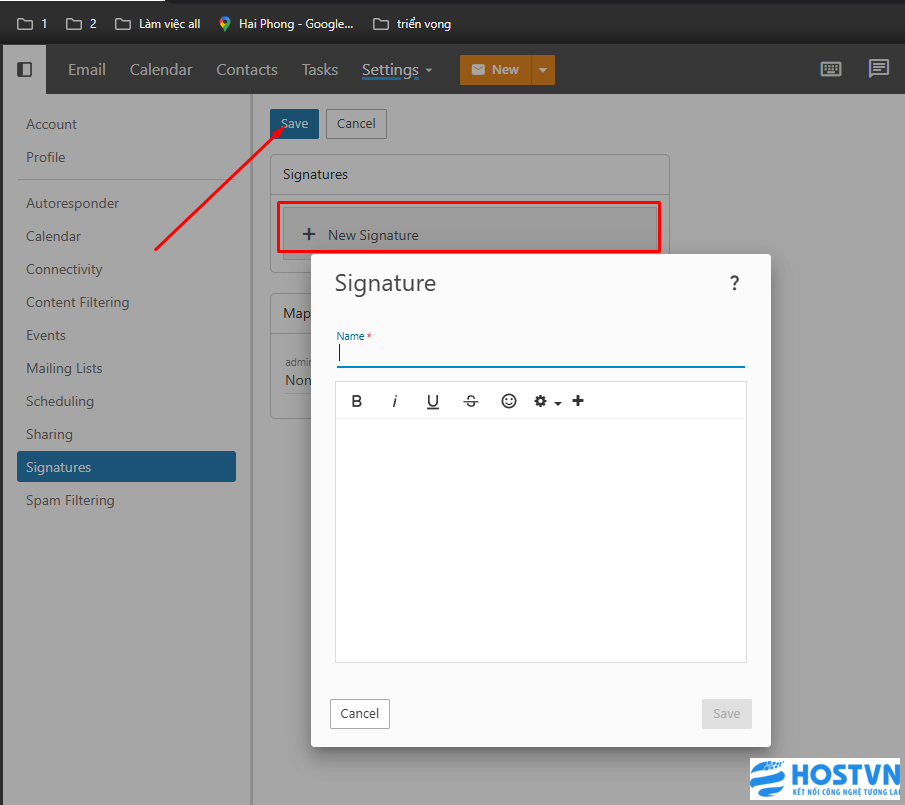 Trong môi trường làm việc chuyên nghiệp, chữ ký email không chỉ là phần kết thúc của một thông điệp, mà còn là yếu tố thể hiện hình ảnh thương hiệu, mức độ uy tín và phong cách giao tiếp của doanh nghiệp. Bài viết này HOSTVN sẽ hướng dẫn các bạn tạo chữ ký trong Email Business Bước 1: Đăng nhập vào user. Bước 2: Chọn Cài đặt => Chữ ký.