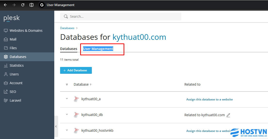 Bạn muốn tạo database user trên hosting Plesk dưới đây là hướng dẫn chi tiêt Bước 1: Đăng nhập vào hosting trực tiếp từ trang quản trị dịch vụ hoặc từ đường link do HOSTVN cung cấp