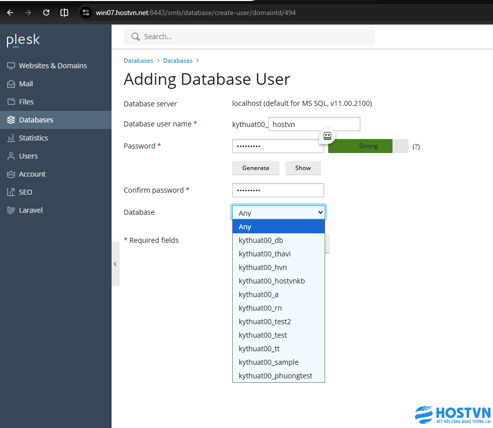 Nhấn vào OK vậy là bạn đã tạo được 1 database user trên hosting Plesk rồi. Chúc các bạn thành công HOSTVN tự hào là nhà cung cấp dịch vụ Cloud Computing lâu đời và uy tín hàng đầu tại Việt Nam với hệ thống thiết bị phần cứng chuyên dụng, chính hãng được đầu tư bài bản, hứa hẹn kiến tạo cho doanh nghiệp bạn một hạ tầng mạnh mẽ, ổn định và an toàn, làm nền tảng vững chắc để phát triển website trong thời đại 5G đầy tiềm năng. Bạn cũng có thể tham khảo thêm các dịch vụ Web Hosting, Cloud VPS, Server, Email Business do chúng tôi cung cấp hoặc xem các bài viết chia sẻ khác của chúng tôi tại đây Liên hệ với chúng tôi qua:
