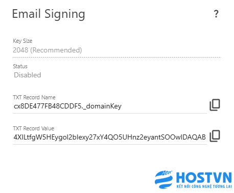 Sau khi bấm Enable (Bật) một bảng thông báo sẽ hiện ra cung cấp cho các bạn bản ghi DNS cần thiết để cấu hình bản ghi DKIM