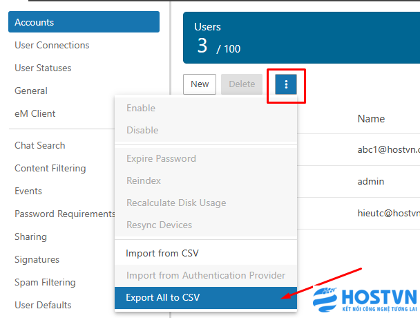 Bước 3 : Để đảm bảo đúng format của hệ thống thì bạn hãy nhấn vào dấu ba chấm sau đó nhấn Export All to CSV.