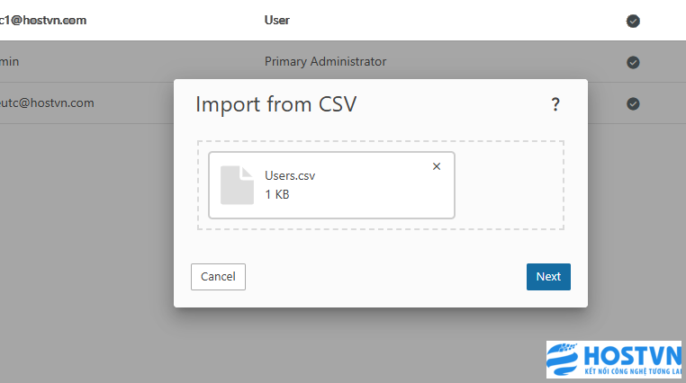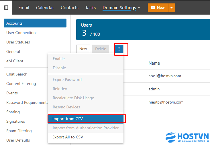 Cách 2: Khi số lượng email cần tạo lớn nếu thao tác theo cách 1 sẽ rất mất thời gian hãy áp dụng cách import file để tạo nhiều email một lúc nhé.