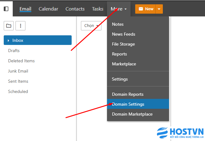 Bước 2 :Nhấn vào More -> Domain Settings như cách 1