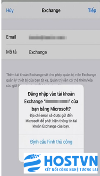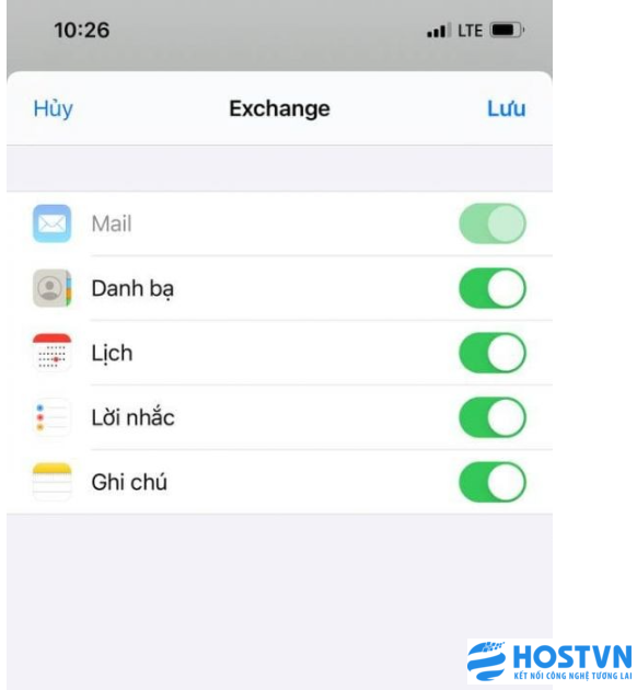 - Chờ một lát, để thiết bị của bạn thiết lập tới server là bạn có thể sử dụng được email trên iPhone/iPad của bạn. Sau đó ấn Lưu.