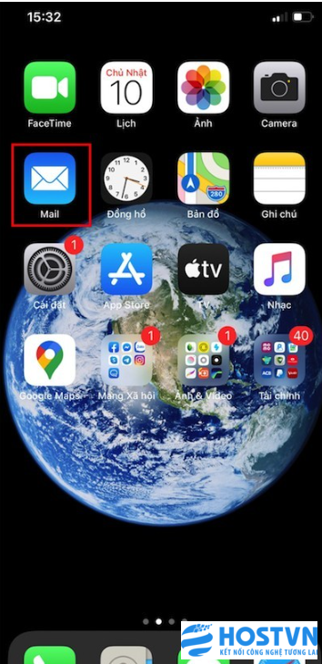 Bài hướng dẫn thiết lập sử dụng email mặc định trên iOS 14, các phiên bản khác các bạn thao tác tương tự, từ màn hình chính các bạn chọn biểu tượng Mail.