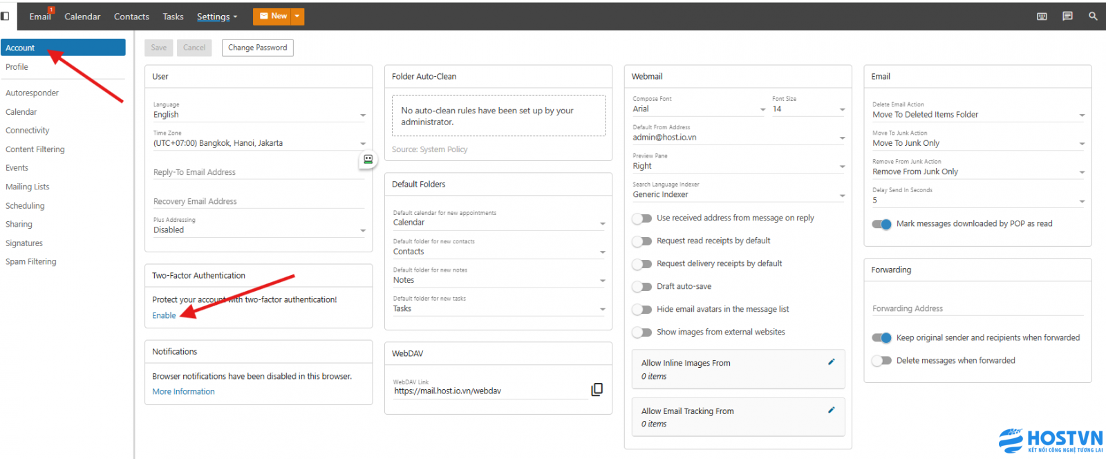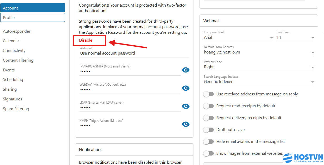 - Hoàn tất, từ giờ khi bạn đăng nhập vào webmail, sẽ có thêm 1 bước nhập mã xác thực được gửi đến email bạn đăng ký nhận mã xác thực.