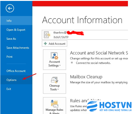 Tại giao diện chính của Outlook, bạn chọn vào File và tìm đến Options.